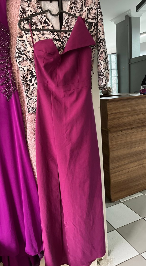 Mor renkte, straplez ve drapeli uzun abiye elbise. Normal kesim ve, düğün gibi özel anlar için uygundur. ✨