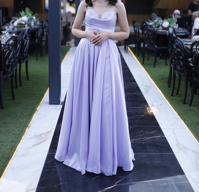 Nişan için uzun, mor pastel tonlarında, straplez ve drapeli tasarıma sahip, modern klasik tarzda ve vücuda oturan elbise. Nişanım için 36 benden olarak aldım ama korse kısmı büyük geldiği için terzide 34 bedene küçültüldü. Boyu 1.80 civarında daha da uzun olabilir. Platform topuklu giydiğim için çok kısaltılmadı elbisenin boyu. Alacak kişi istediği kadar oynama yapabilir. Çok beğenerek aldım ve çok yüksek fiyata aldım, başka giyecek yerim olmadığı için satıyorum.