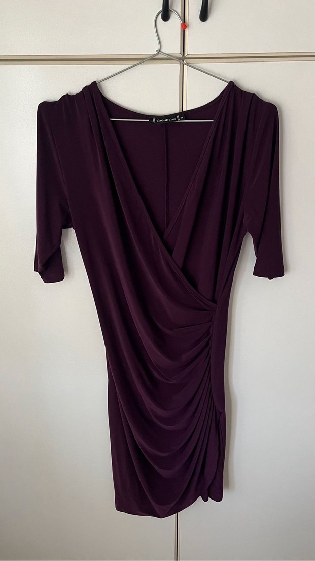 Mor Drapeli V Yaka Midi Elbise