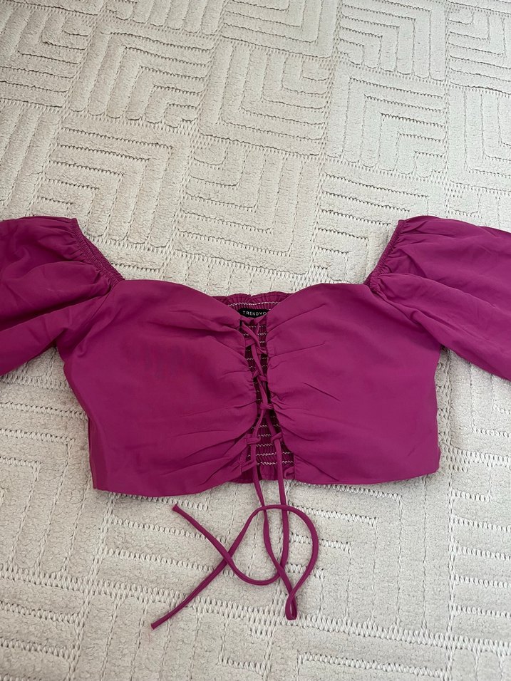 Mor Düğmeli Bohem Crop Bluz
