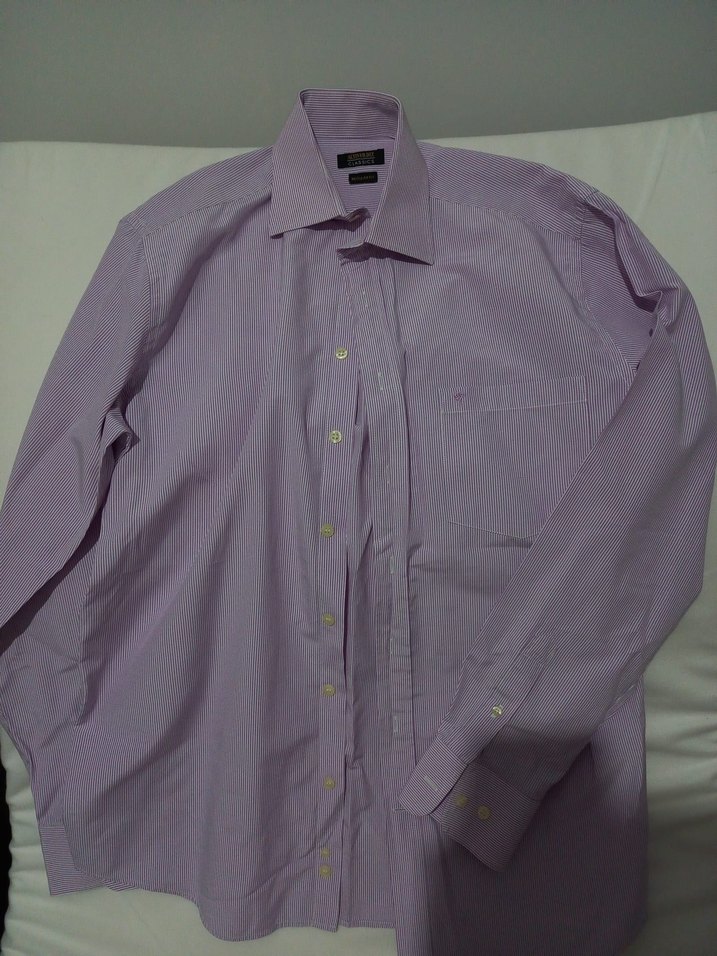 Mor renkli, düğmeli yakalı ve uzun kollu erkek gömleği. İpeksi kumaştan, normal kesim ve ofis kullanımı için uygundur. Pastel tonlarda.