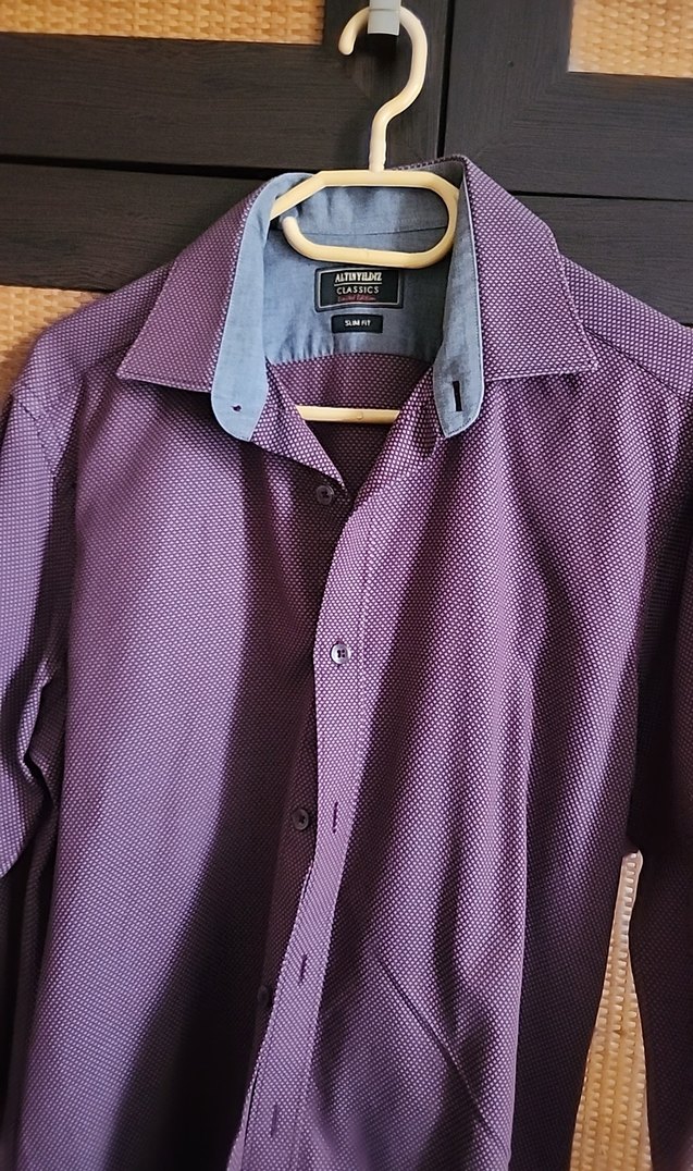 Mor Düğmeli Erkek Gömlek