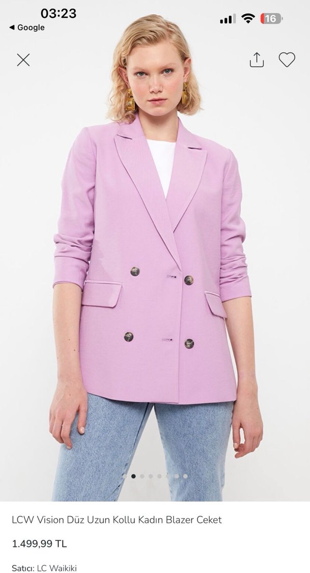Pastel mor renkli kadın blazer, düğmeli ve normal kesim. Uzun kollu, yakalı, midi boyda ve düz dokuma kumaştan üretilmiştir. 36/38 uyumlu