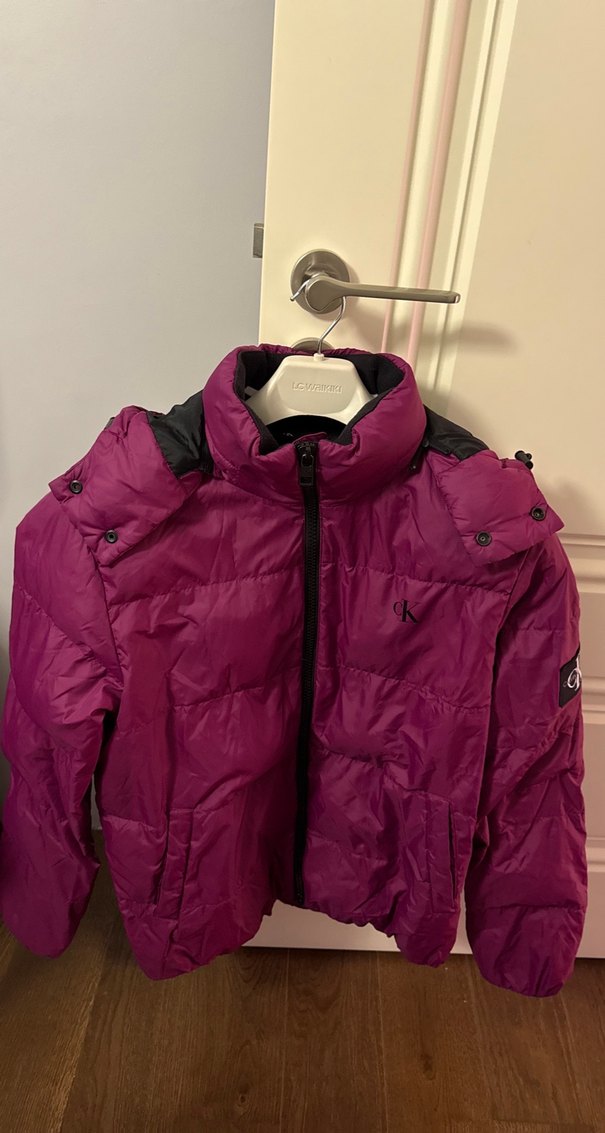 Düğmeli detaylı, yakalı ve fitted kesim mor kadın mont. Yumuşak ve sıcak kumaştan, midi boyda, günlük kullanıma uygun rahat bir modeldir. CALVIN KLEIN