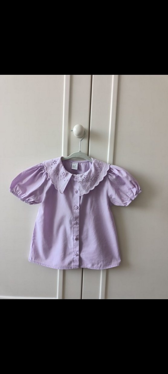Mor Düğmeli Kız Çocuk Pamuk Gömlek
