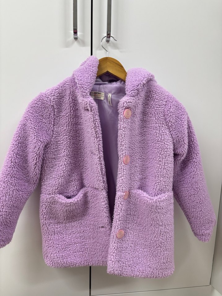 Mor Düğmeli Kız Çocuk Peluş Ceket