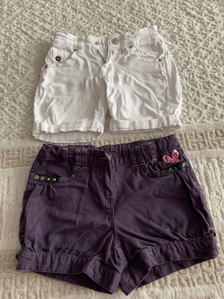 Lacivert lc Waikiki ve beyaz LTG markalı beli , düğmeli ayarlanabilir ,pamuklu ve bol kesim kız şortu. Düz ve desensiz, sokak stiline uygun.