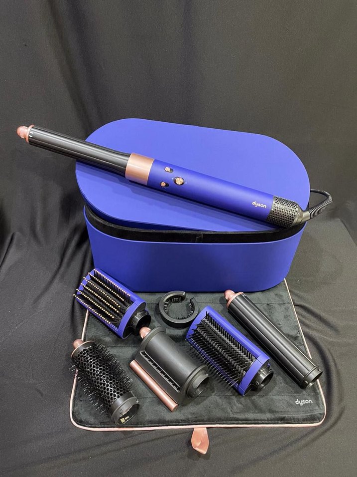 Dyson mor saç şekillendirici set, farklı başlıklarla çeşitli şekillendirme imkanı sunar. Kutusu ve ısıya dayanıklı matı vardır. ♀️