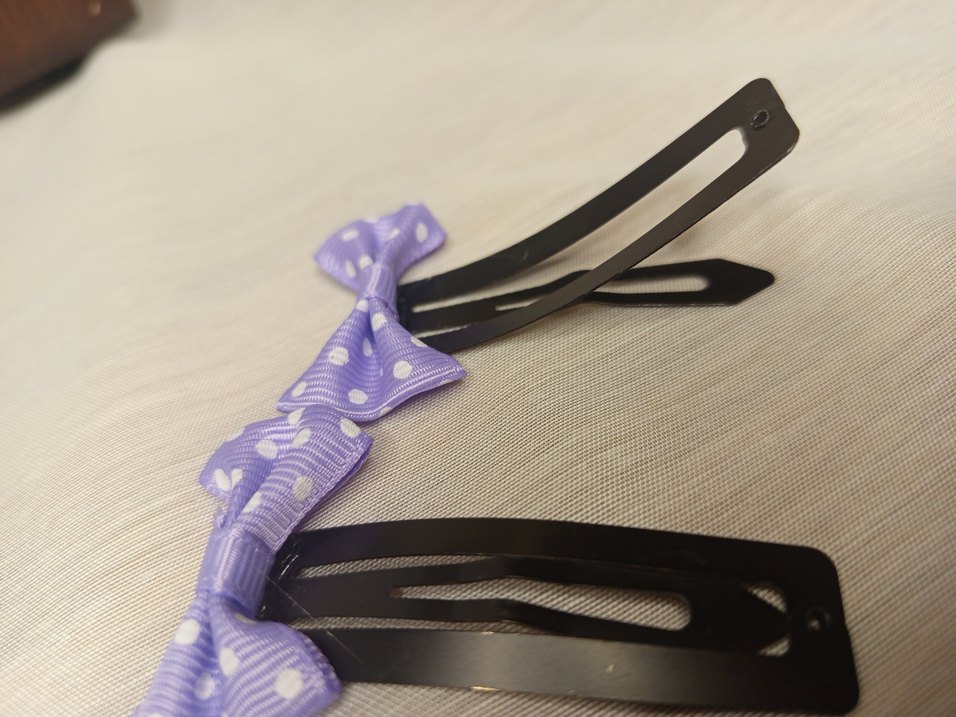 Mor puantiyeli fiyonk detaylı saç tokaları, modaya uygun ve özgün bir tarz için ideal. işaretlenen marka ile bir alakası yoktur ürün bana aittir el yapımıdır ve toplu Sipariş alınır tane fiyatı 40 TL'dir toplu siparişlerde fiyatta uygun şekilde anlaşılır.