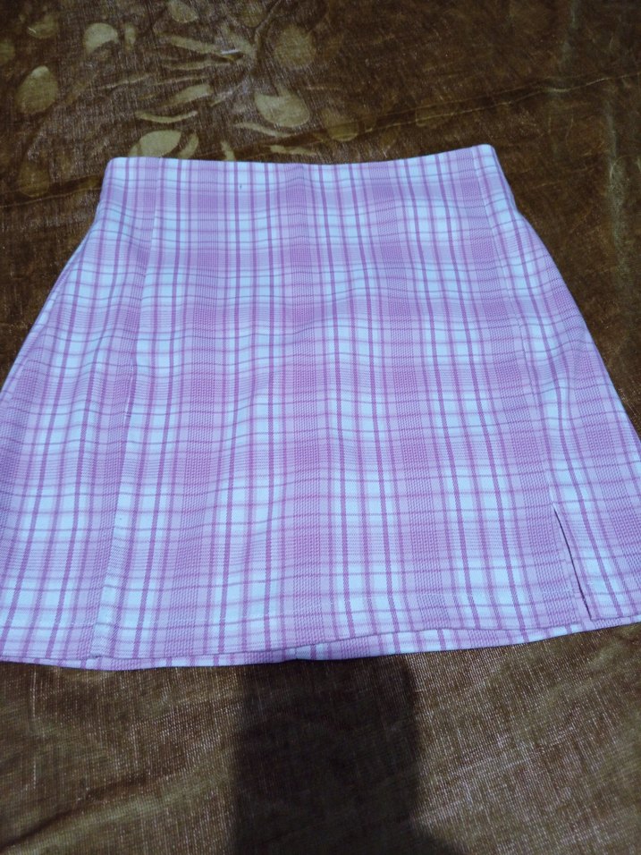 Sentetik kumaştan yapılmış, mor renkli, pilili ve pastel tonlarda ekose desenli bol kesim mini etek. Rahat ve günlük kullanıma uygun.