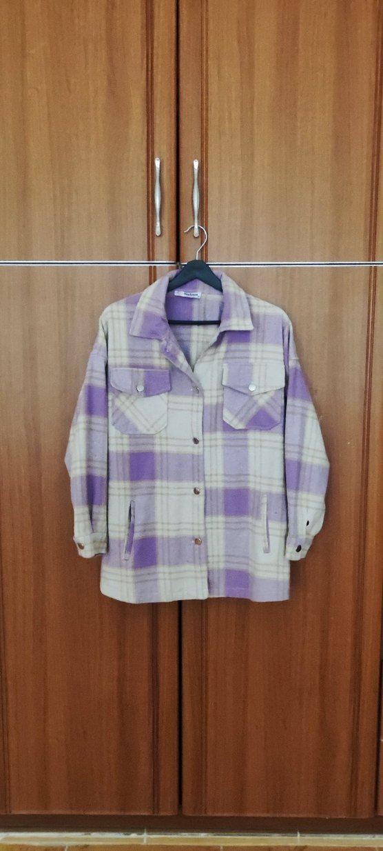 Noa&Noa Mor ekoseli,düğmeli,uzun kollu,rahat kesim kadın gömlek. Yumuşak ve sıcak kumaştan, iki ön cepli, günlük rahat kullanıma uygun. 36 beden.