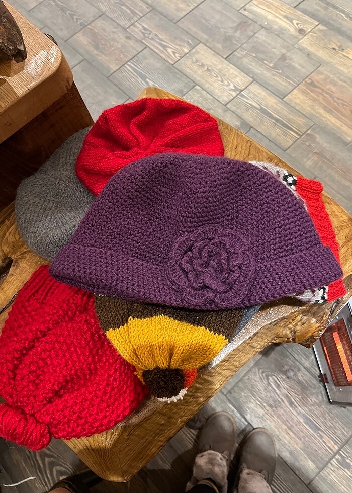 Mor el örmesi şapka