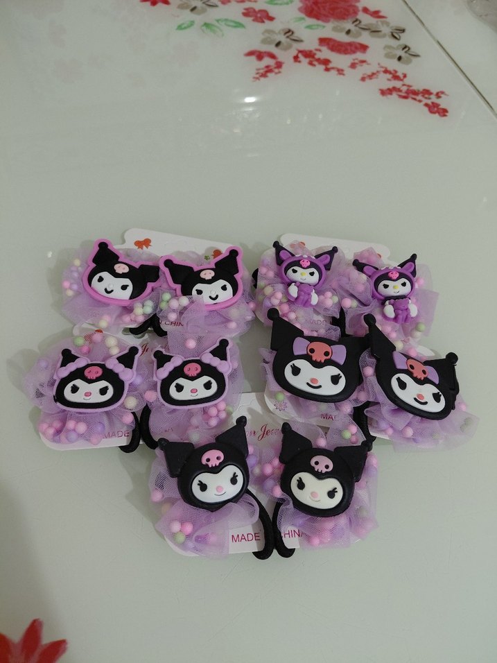 Mor elastik saç tokaları, renkli baskılı gotik desenlerle çocuklar için rock punk tarzını yansıtıyor.