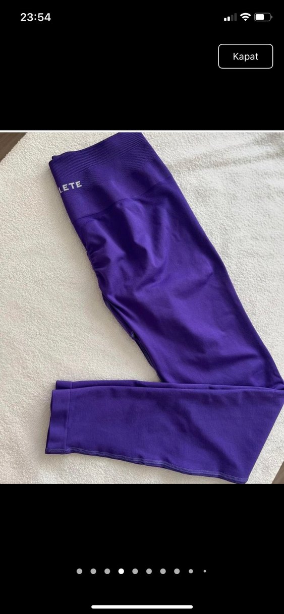 Mor renk, elastik sentetik kumaştan yapılmış, spor ve sokak stiline uygun, normal midi boyda, düz desenli tayt. ♀️