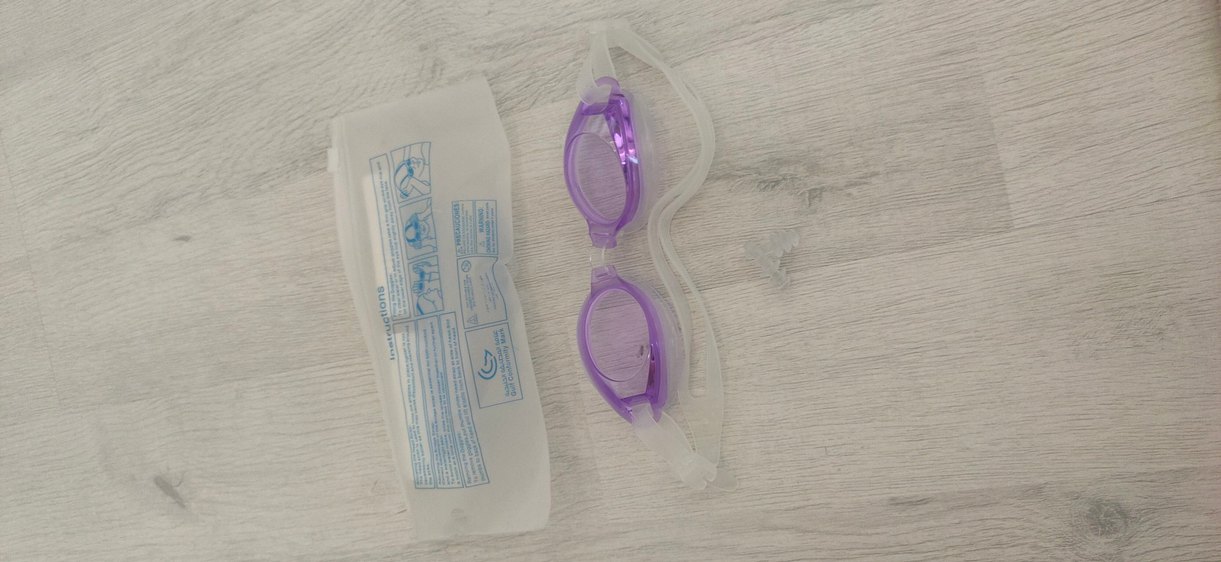 Mor renkli, elastik bantlı yüzücü gözlüğü, plaj için rahat ve tam oturan tasarıma sahiptir. Pastel tonları minimalist tarza uygundur.