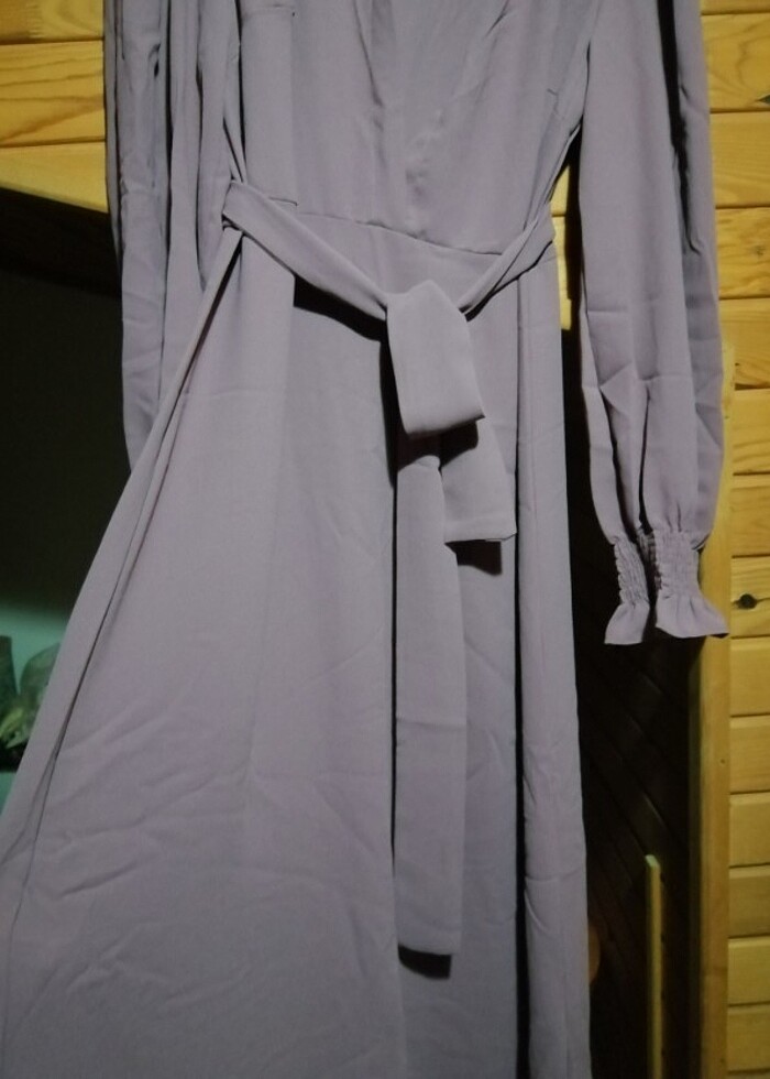 Mor, uzun, kuşaklı elbise
