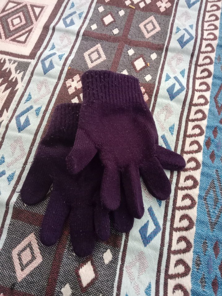 Düz, mor renkli, örme yapıda ve yumuşak sıcak tutan kumaştan erkek çocuk eldiveni.