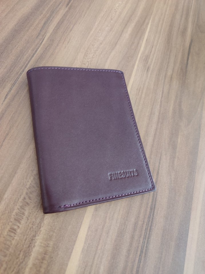 Parlak mor renkte, FINESUITS markalı erkek cüzdanı. Minimalist ve sade tasarıma sahiptir, günlük kullanıma uygundur.
