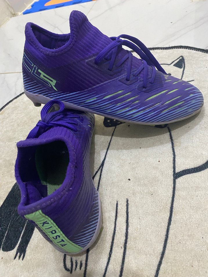 Koyu mor renkte, kauçuk tabanlı ve velcro bantlı erkek futbol ayakkabısı. Spor ve sokak stili için uygundur.  içindeki etiketi kaşındırdığı için kesilmiştir