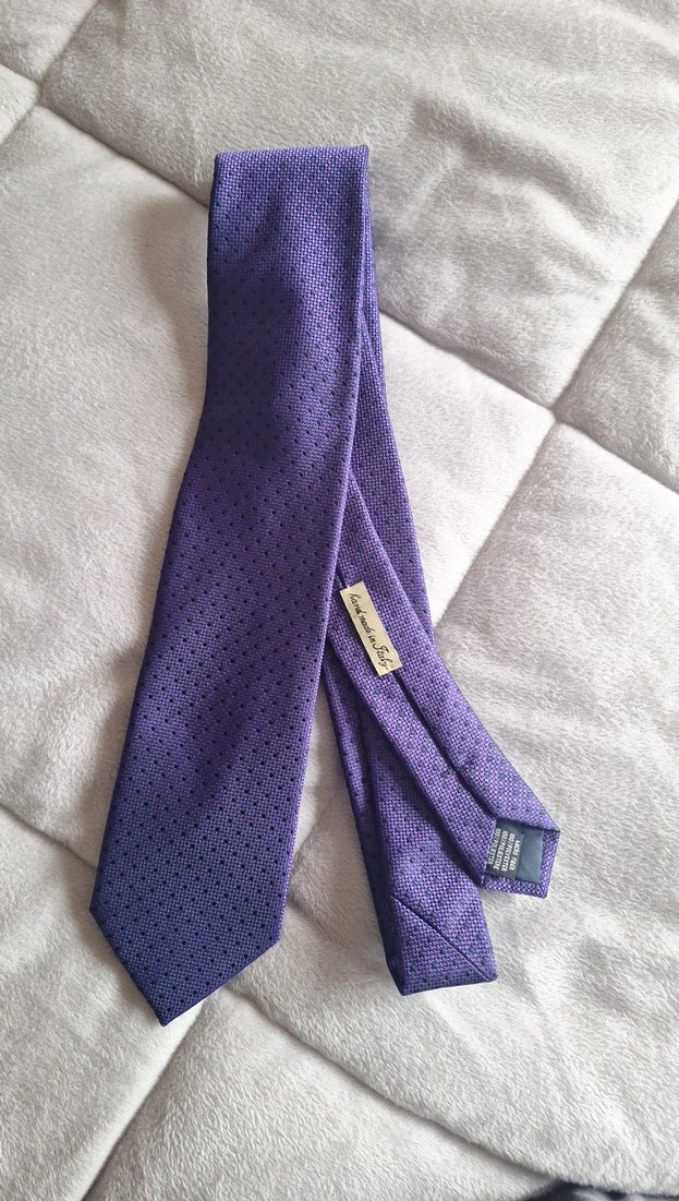 Düz mor renkte, hafif noktalı dokulu erkek kravatı. İş ve sokak modasına uygun, yumuşak kumaş ve sade tasarım.