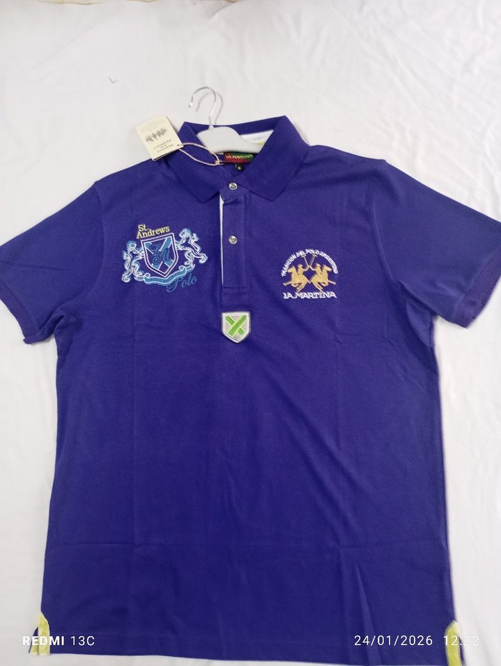 Mor renkte, düğmeli ve baskılı detaylara sahip erkek polo tişört. Kısa kollu, regular fit ve yumuşak, sıcak kumaştan üretilmiştir. Günlük sokak stili için uygun. ️