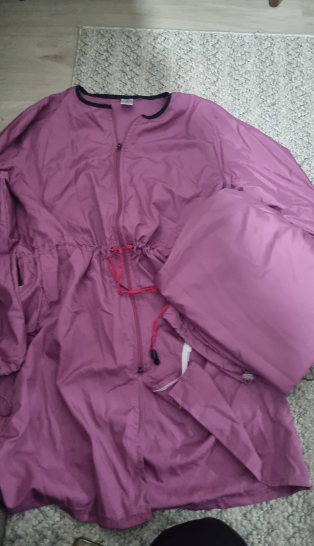 Mor, fermuarlı, uzun kollu ve yüksek yakalı bol kesim hamile montu. Sentetik kumaştan yapılmıştır, günlük kullanım için uygundur. ✨
