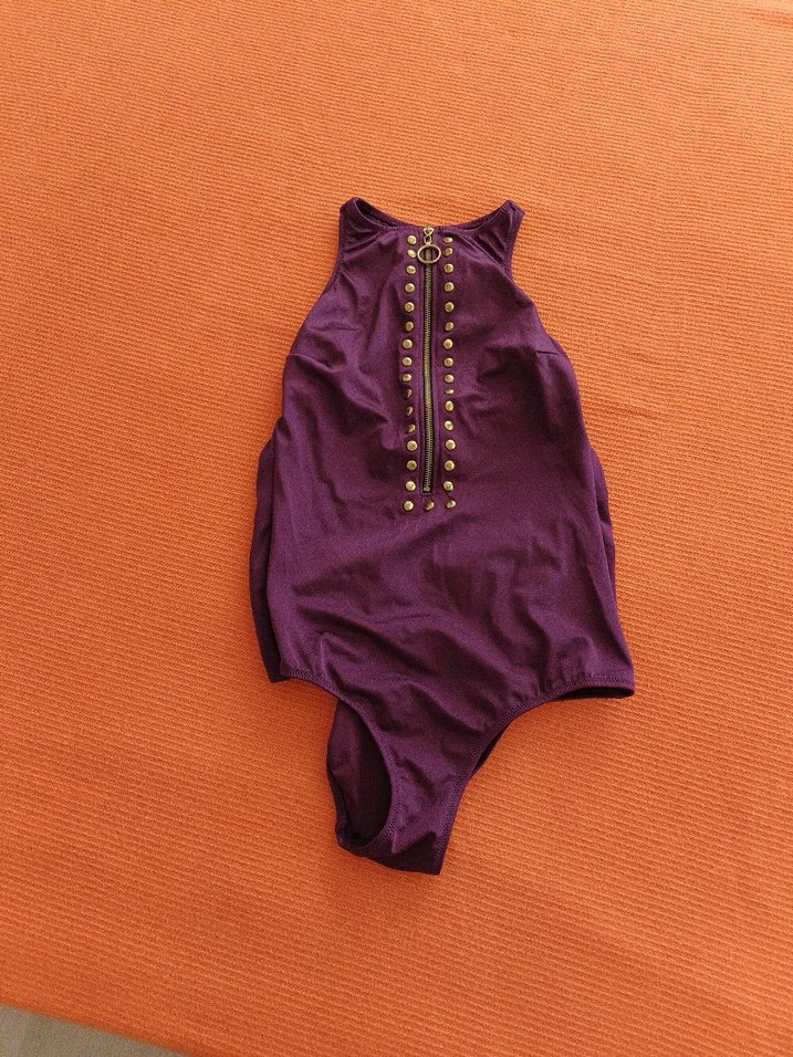 Mor Fermuarlı İnce Askılı Mayo