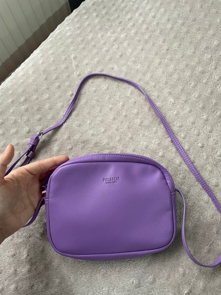 Pastel mor renkte, fermuarlı kapanışa sahip, yumuşak dokulu kadın çapraz çanta. Minimalist tasarımıyla günlük sokak stiline uygun.