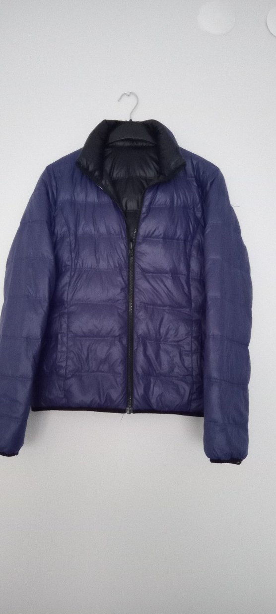 Mor fermuarlı kadın ceketi, yüksek yakalı ve uzun kolludur. Sentetik kumaştan, dar kesim ve normal boydadır. Minimalist sokak stili, günlük kullanım için uygundur.