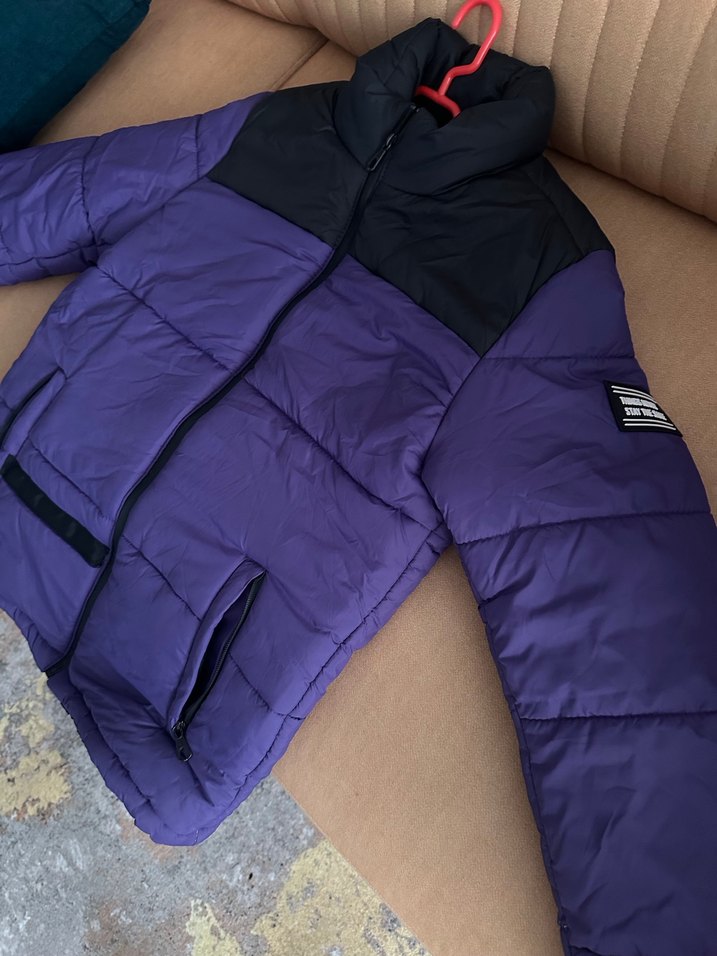 Koyu mor fermuarlı kadın kışlık ceket, yüksek yakalı ve uzun kollu. Yumuşak, içi polar kumaştan, normal boyda ve vücuda oturan kesimde. Günlük sokak stiline uygun. 4 5 defa giyildi kusursuz ❄️