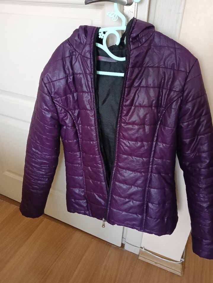 Mor renkte, fermuarlı ve yaka detaylı, uzun kollu, orta boy kadın mont. Yumuşak sentetik kumaştan, günlük rahat kullanım için uygundur.