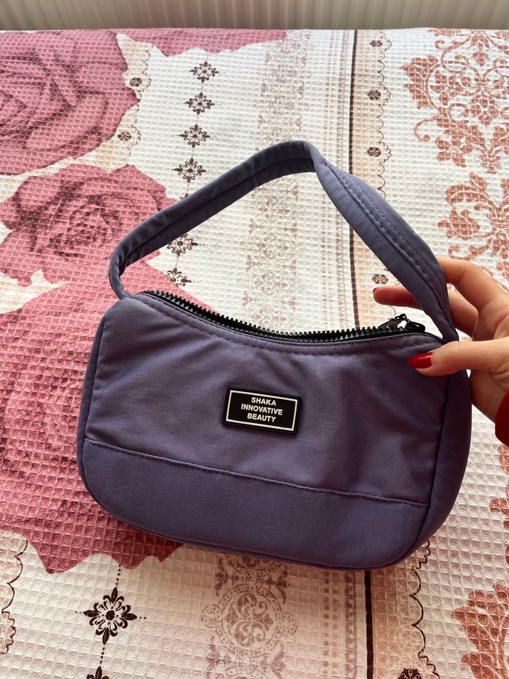 Mor sentetik kumaştan yapılmış, fermuarlı ve tek saplı kadın omuz çantası, Paris tarzı sokak giyimine uygun.