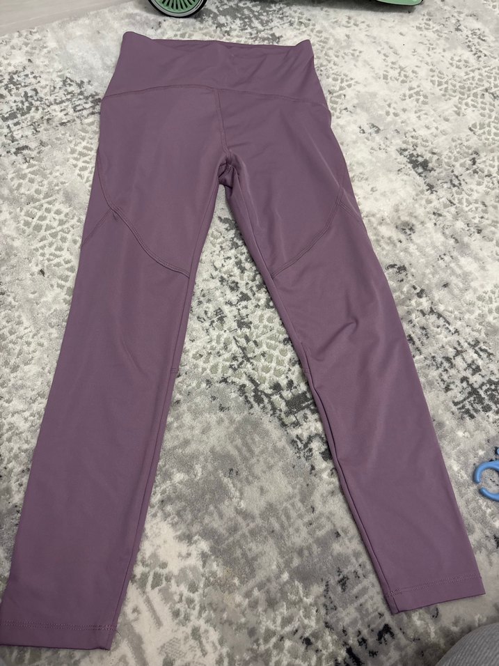 Mor renkte, fermuarlı ve normal boyda, sentetik kumaştan yapılmış, sportif ve sokak stiline uygun kadın tayt.
