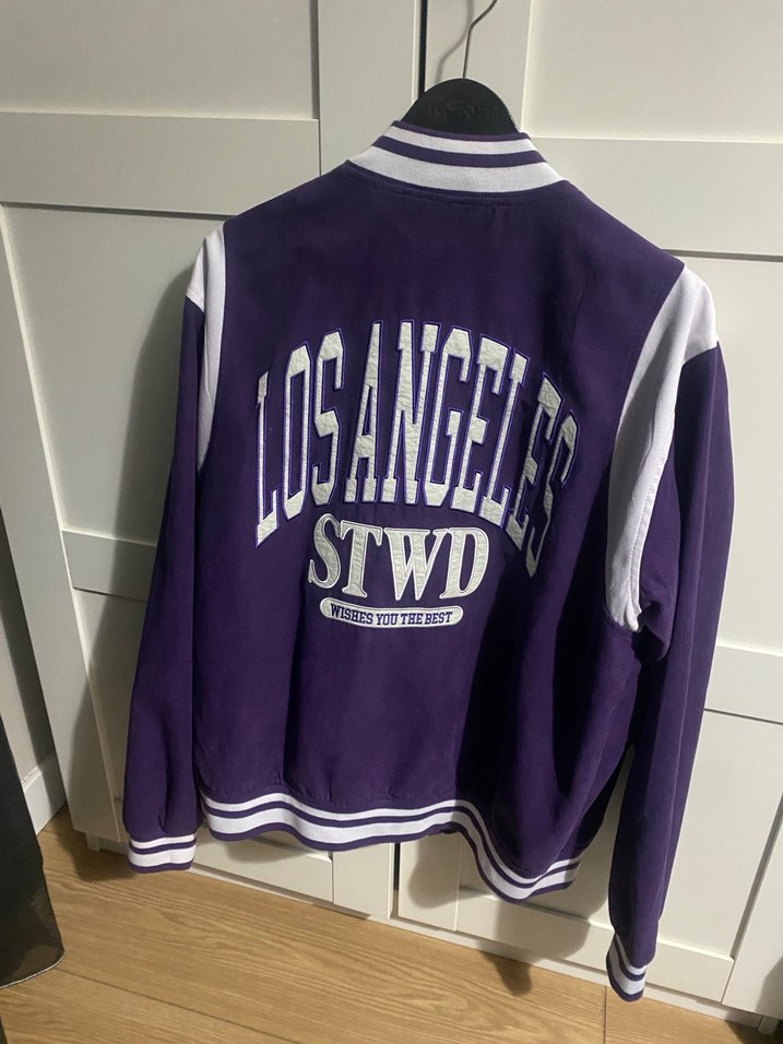 Bol kesim, uzun kollu mor fermuarlı ceket. Arkasında 'LOS ANGELES STWD' baskısı bulunur, yumuşak fleece kumaştan üretilmiştir. Spor ve günlük tarzlar için uygundur.