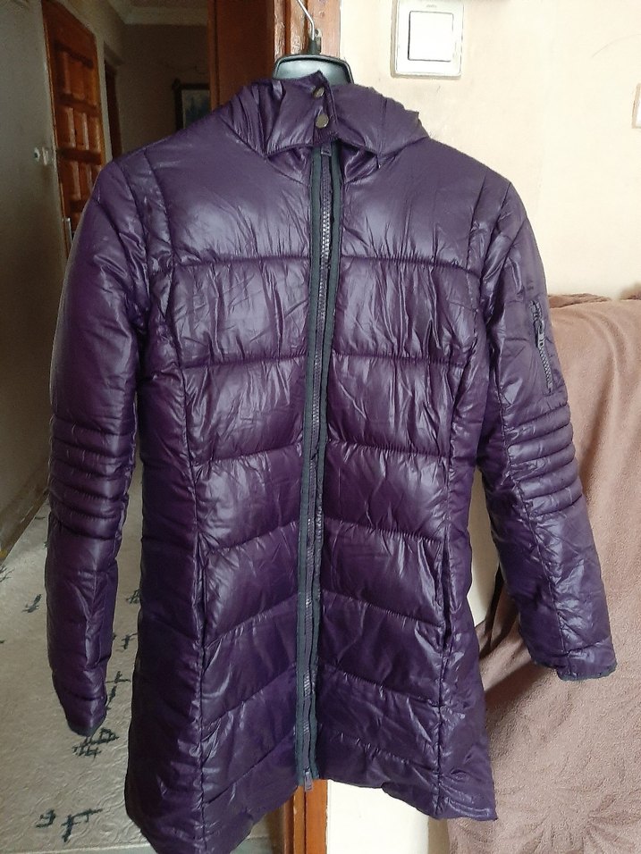 Mor Fermuarlı uzun Kadın Kışlık Mont