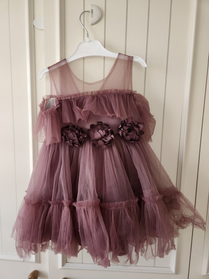 Mor Fırfırlı Kız Çocuk Abiye Elbise