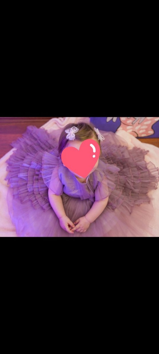 Mor renkli kız çocuk elbisesi, fırfır ve arkası kuyruk detaylı. Sadece bir kez doğumgününde kullanıldı, yeni gibi.