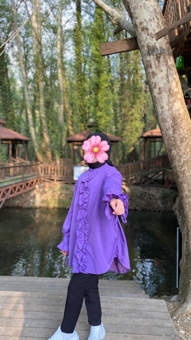 Mor Fırfırlı Midi Tunik