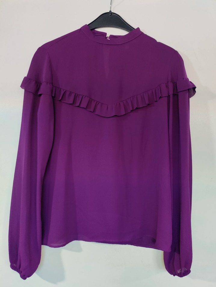 Mor Fırfırlı Uzun Kollu Bluz