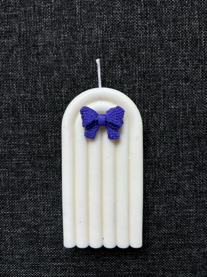 Mor Fiyonk Detaylı Beyaz Erkek Papyonlu mum
