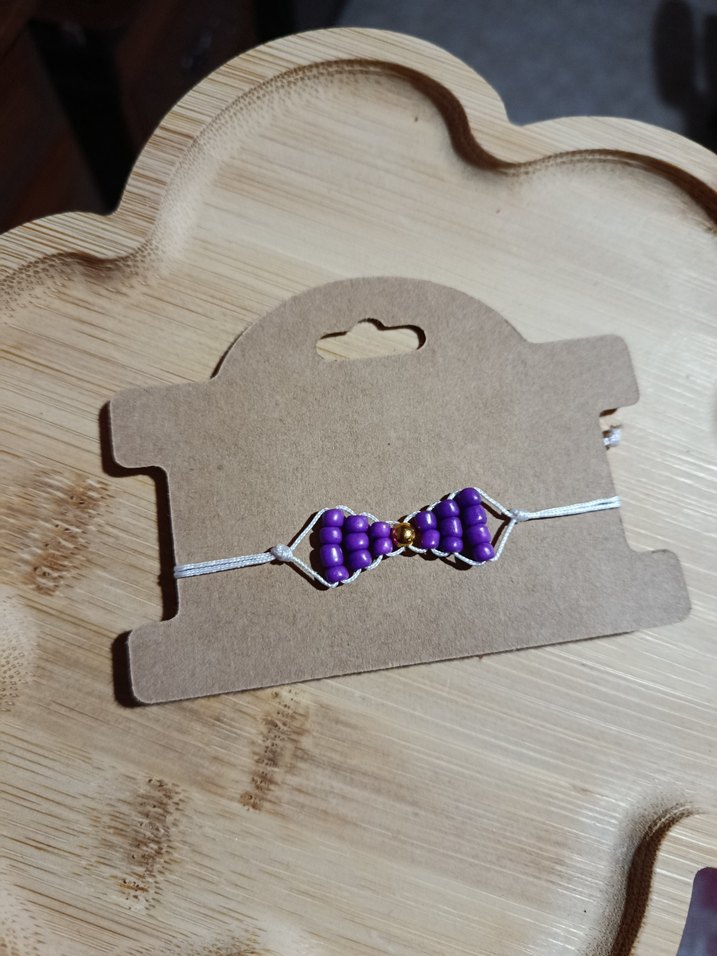 Mor boncuklardan oluşan fiyonk detaylı bohem tarz bileklik, ince ayarlanabilir ip ile minimalist ve retro stillere uygundur.