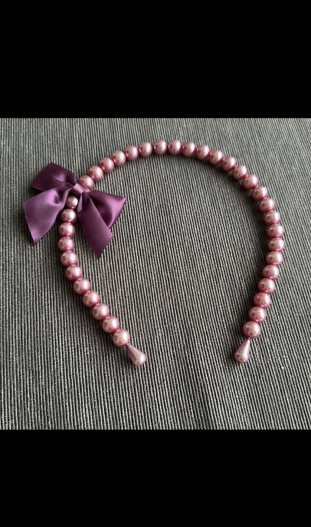 Mor saten fiyonklu, inci boncuklarla süslenmiş.Parisien ve gotik tarzları yansıtır.