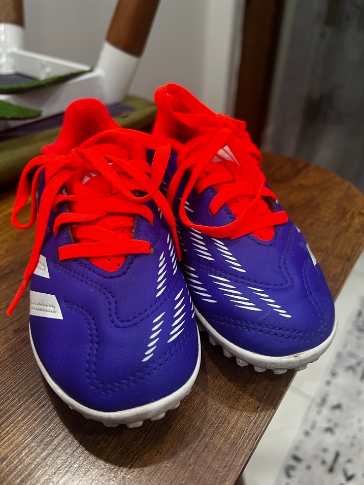 Mor renkli futbol ayakkabısı, cırt cırtlı ve renkli tasarımlı, kauçuk tabanlı ve sportif sokak stiline uygun. ⚽ hediye geldi 2 kez kullanıldı küçük geldi