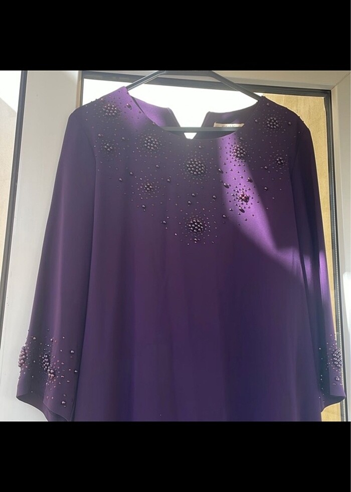 Mor göğüs ve kol boncuk detay 48 beden abiye bir defa kullanıldı temız arkadan fermuarlı ufak bir yırtmacı var boy ölçüsü 110 ıkı koltuk arası 50