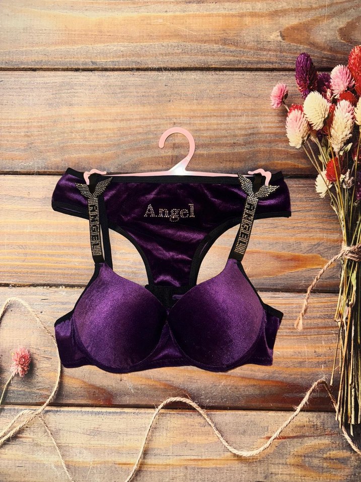 Mor Gotik Atletik Sütyen Angel Baskılı