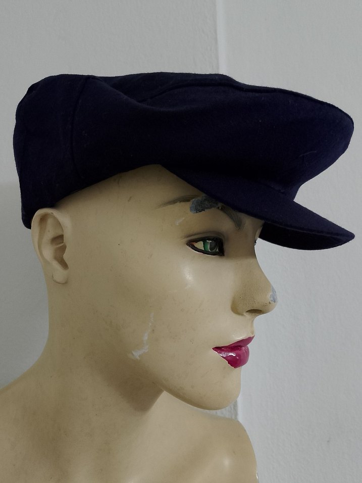 Mor renkte, sentetik kumaştan yapılmış, gotik tarzda Parisli kadın şapkası. Koyu tonlarda, zahmetsiz şıklık sunar.
