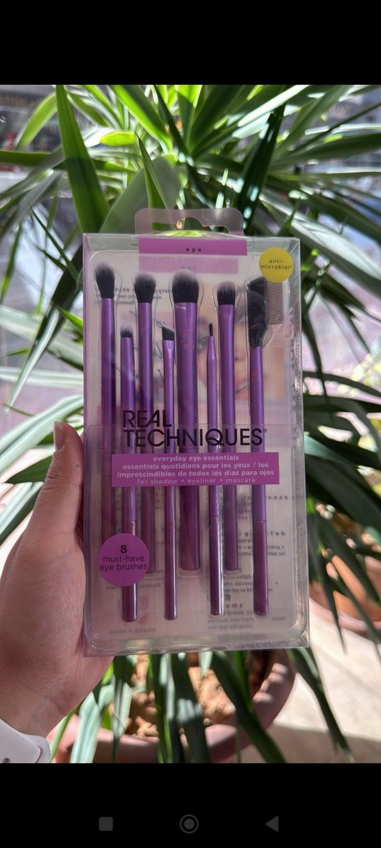 Real Techniques markasına ait, göz makyajı için 8 parça koyu mor fırça seti. Far, eyeliner ve maskara uygulamasına uygundur. ️