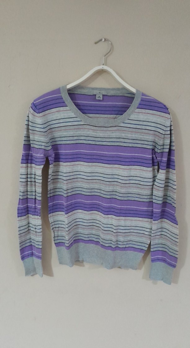 Mor Gri Çizgili Uzun Kollu Triko Kazak
