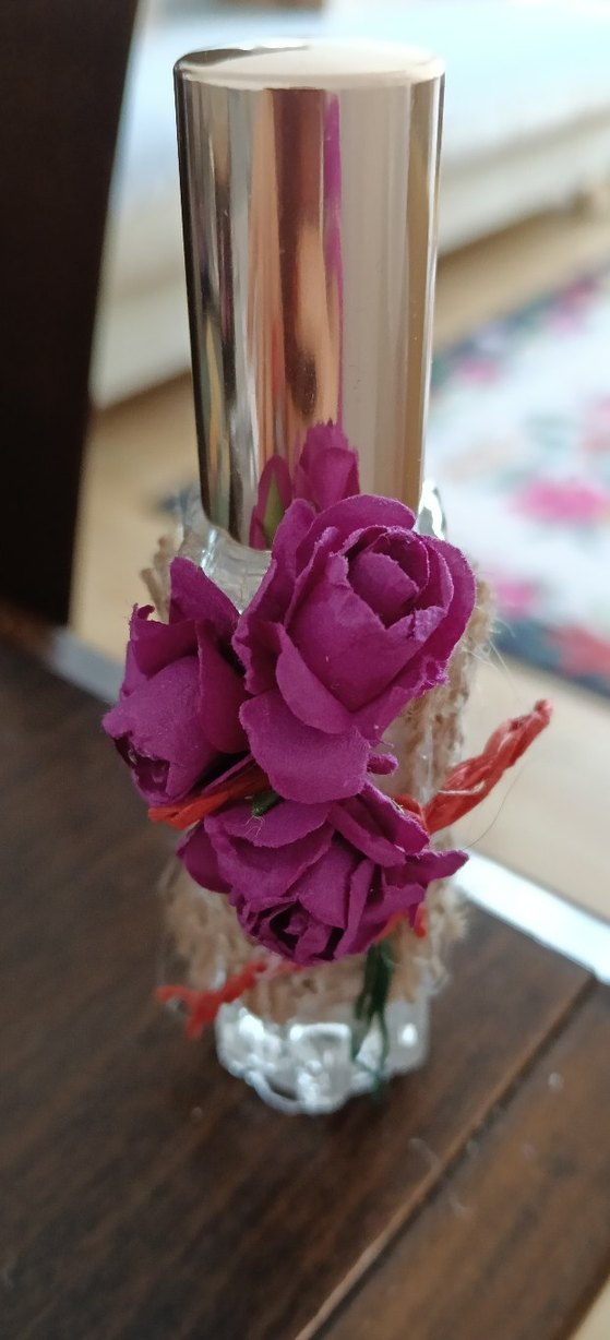 Bej Parfüm Şişesi Çiçek Detaylı