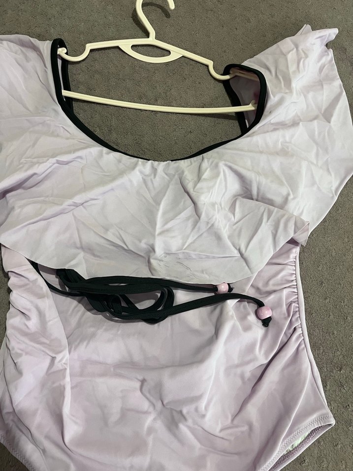 Hamile mayo ve drapeli tasarıma sahip, yumuşak mor renkte kadın mayo, günlük athleisure kullanıma uygun.